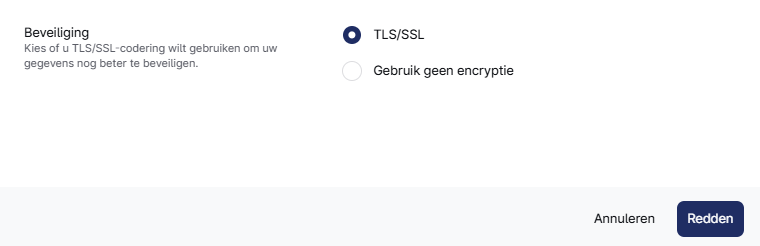 - TLS/SSL: De meeste e-mailproviders gebruiken deze optie.