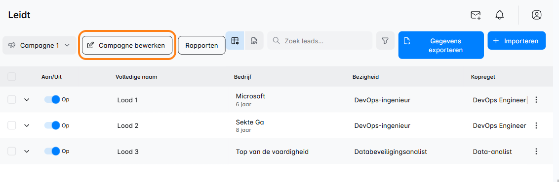 Optie 2: Nieuwe leads toevoegen