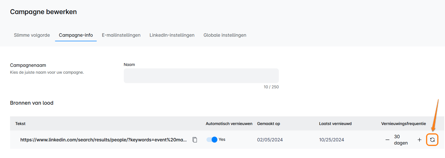 Zoek nu de link die je wilt vernieuwen en klik op deze knop: