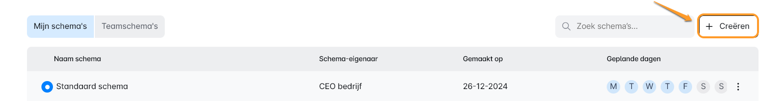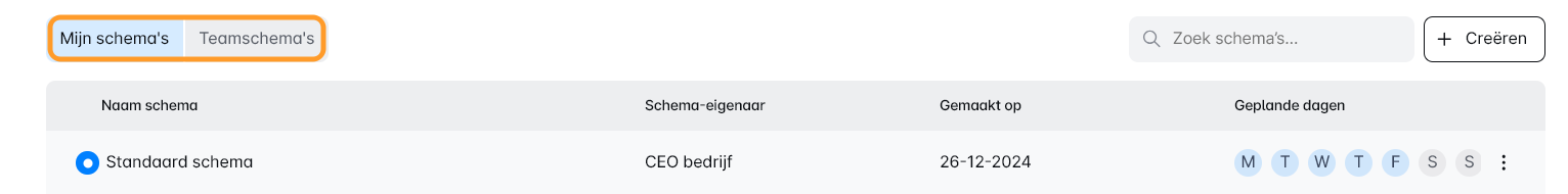 Je vindt twee keuzes: 'Mijn Schema' en 'Team Schema.'