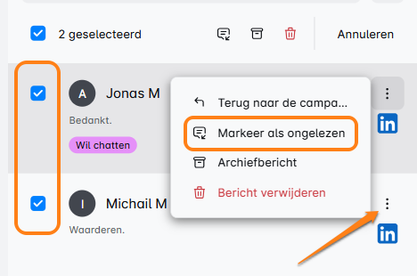 Zodra u uw LinkedIn-profiel aan de Leadriver koppelt, toont deze filter uw niet-campagnegebonden berichten. ❗ Berichten die zijn verzonden voordat u uw account koppelde, verschijnen hier niet.